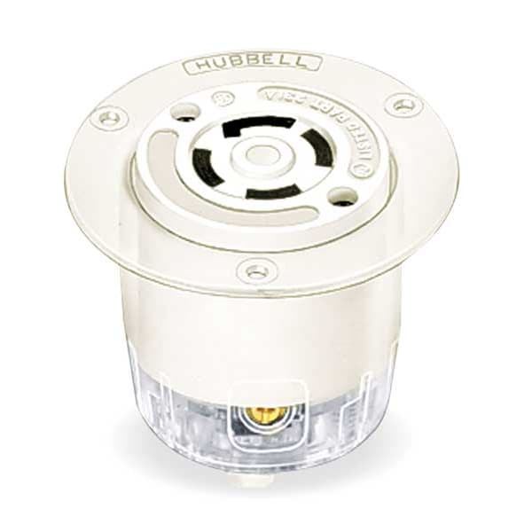Flanged Locking Inlet, L18-30R, 30 A, 120/208V AC, Three Phase, 4 Pole, Flush Mount, White