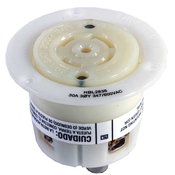 Flanged Locking Receptacle, L23-30R, 30 A, 347/600V AC, Three Phase, 4 Pole, Flush Mount, White
