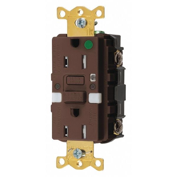 GFCI Rceptcle, Hspital, Brwn, 15A, 0.5 HP