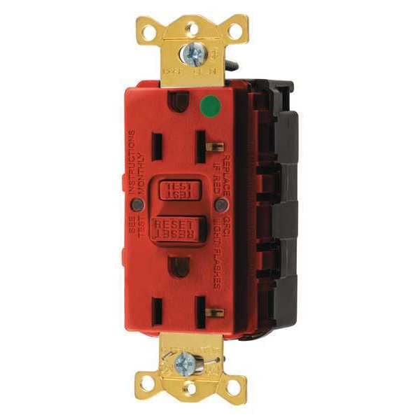 GFCI Rceptcle, Hspital, Red, 20A, 1 HP
