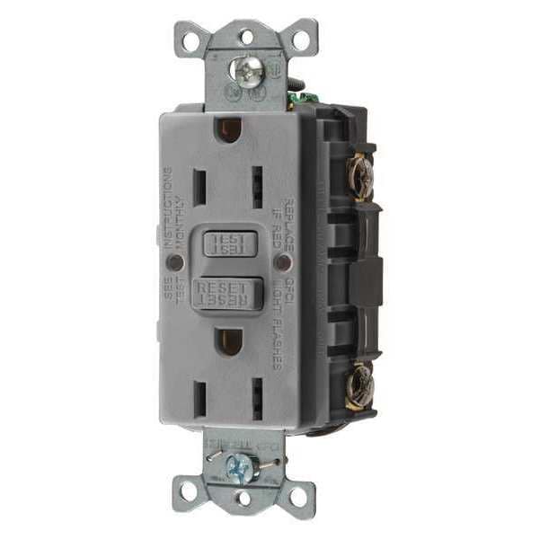GFCI Receptacle, 15A, 125VAC, 5-15R, Gray