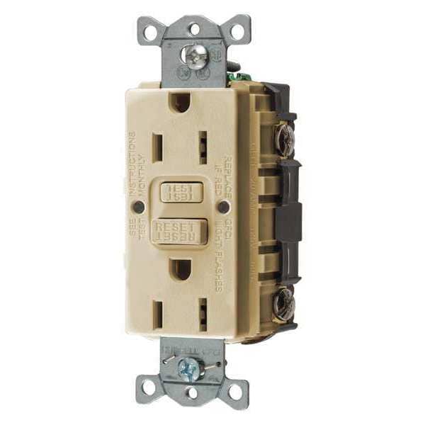 GFCI Receptacle, 15A, 125VAC, 5-15R, Ivory