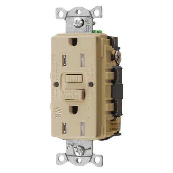 GFCI Receptacle, Connection Orientation Straight, Cover Type No Cover, Current Rating 15 A, GFCI Yes, Grounding Grounded, Hazardous Location Specification Not Applicable, Housing Color Ivory, Housing Material Nylon, Mount Type Flush, NEMA Enclosure Rating 1, NEMA Receptacle Configuration 5-15R, Number of Gangs 1, Number of Poles 2, Number of Wires 3, Phase Single, Polarized Yes, Receptacle Type Duplex, Resistance Properties Tamper Resistant, Weather Resistant, Standards NEC