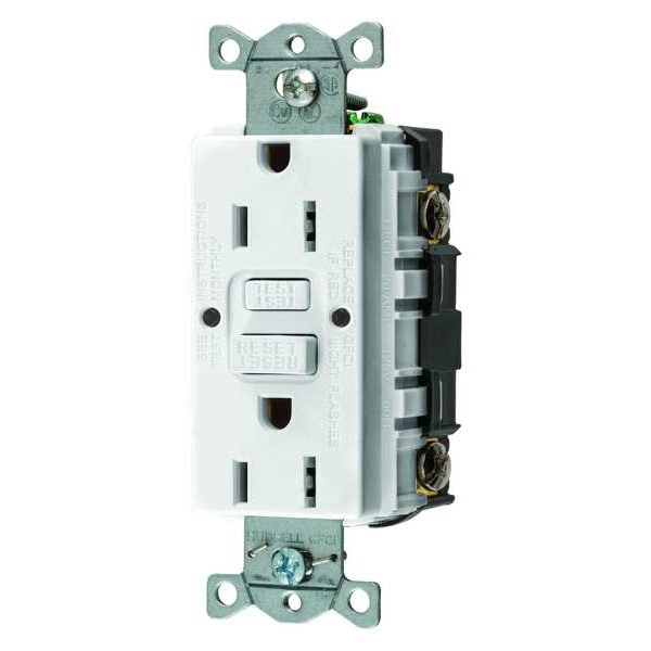 GFCI Receptacle, 15A, 125VAC, 5-15R, White