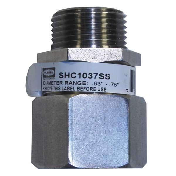 Liquid Tight Cord Connector, Cord Dia. Range 0.63 in to 0.75 in, Box Connection 3/4 in MNPT, Material - Cord Connector Stainless Steel, External Strain Relief Material No External Strain Relief, Gland Color Code Yellow, Body Color - Cord Connector Silver, Number of Cords 1, Style - Connector Straight, Strain Relief Type No External Strain Relief, External Strain Relief Length No External Strain Relief, Length - Box to End of Connector 1 5/16 in, Insulated No, Standards CSA LR27378, UL E54218(M)