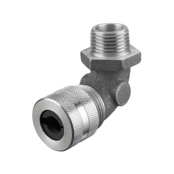 Liquid Tight Cord Connector, Cord Dia. Range 0.25 in to 0.31 in, Box Connection 3/8 in MNPT, Material - Cord Connector Aluminum, External Strain Relief Material No External Strain Relief, Gland Color Code Black, Body Color - Cord Connector Silver, Number of Cords 1, Style - Connector 90 Degrees , Strain Relief Type No External Strain Relief, External Strain Relief Length No External Strain Relief, Length - Box to End of Connector 1 1/4 in, Insulated No, Standards CSA LR27378, UL E54218(M)