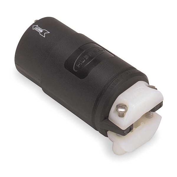 Locking Connector, 20 A, 125V AC, Single Phase, 2 Pole, Screw Terminals, Black