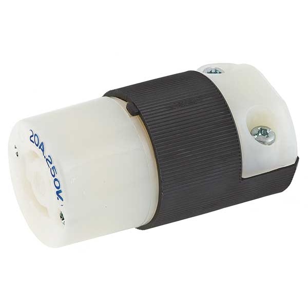 Locking Connector, L2-20R, 20 A, 250V AC, Single Phase, 2 Pole, Screw Terminals, Black, White
