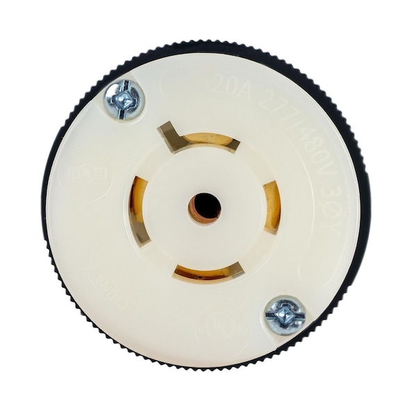 Locking Connector, L22-20R, 20 A, 277/480V AC, Three Phase, 4 Pole, Spring Clamp Terminals