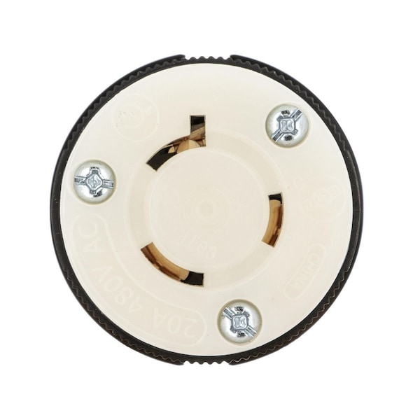 Locking Connector, Connection Orientation Straight, Current Rating 20 A, Housing Color Black, White, Housing Material Nylon, IP Rating IP20, NEMA Receptacle Configuration L8-20R, Number of Poles 2, Number of Wires 3, Phase Single, Resistance Properties Impact Resistant, Shrouded No, Voltage Rating 480V AC, Wire Connection Type Spring Clamp Terminals, Wiring Style Standard, Cap Type No Cap or Cover, Contact Material Copper, For Maximum Cable Diameter 0.93 in, For Minimum Cable Diameter 0.36 in