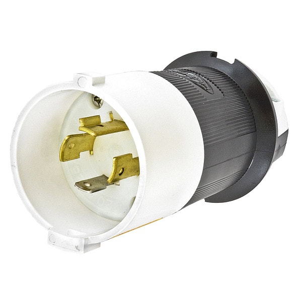 Locking Plug, L14-20P, 20 A, 125/250V AC, Single Phase, 3 Pole, Screw Terminals, Black, White