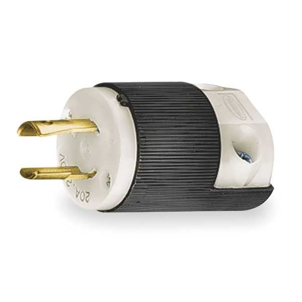 Locking Plug, L2-20P, 20 A, 250V AC, Single Phase, 2 Pole, Screw Terminals, Black, White