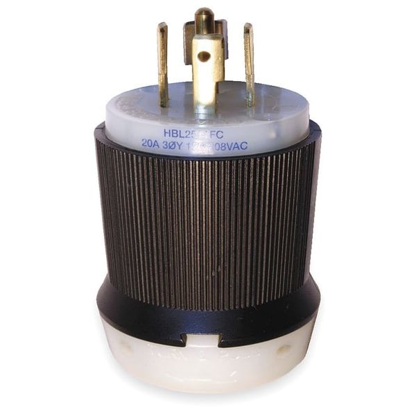 Locking Plug, L21-20P, 20 A, 120/208V AC, Three Phase, 4 Pole, Screw Terminals, Black, White