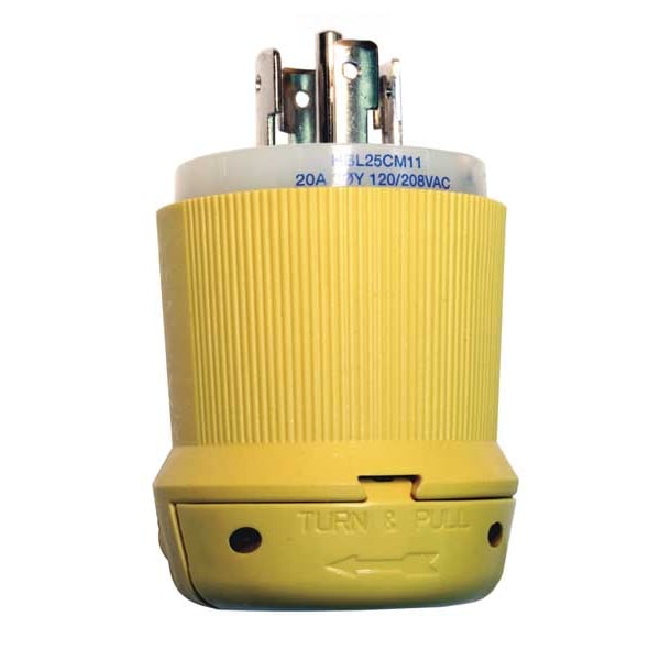 Locking Plug, L21-20P, 20 A, 120/208V AC, Three Phase, 4 Pole, Screw Terminals, Yellow