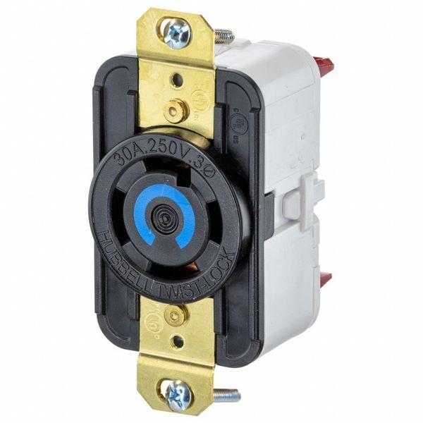 Locking Receptacle, L15-30R, 30 A, 250V AC, Single Phase, 3 Pole, Flush Mount, Black