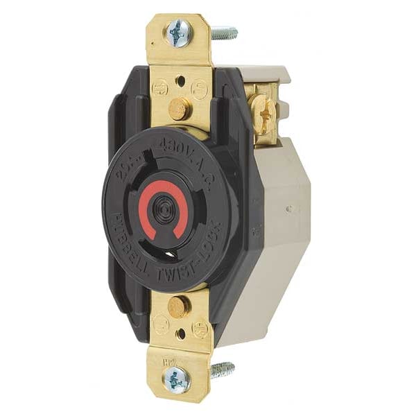 Locking Receptacle, Connection Orientation Straight, Current Rating 20 A, Flange Type Non-Flanged, Housing Color Black, Housing Material Nylon, Mount Type Flush, NEMA Enclosure Rating 1, NEMA Receptacle Configuration L8-20R, Number of Gangs 1, Number of Poles 2, Number of Wires 3, Phase Single, Polarized Yes, Shrouded No, Voltage Rating 480V AC, Wire Connection Type Screw Terminals, Wiring Style Standard, AFCI No, Contact Material Brass, Cover Type No Cover, Flange Diameter Not Applicable