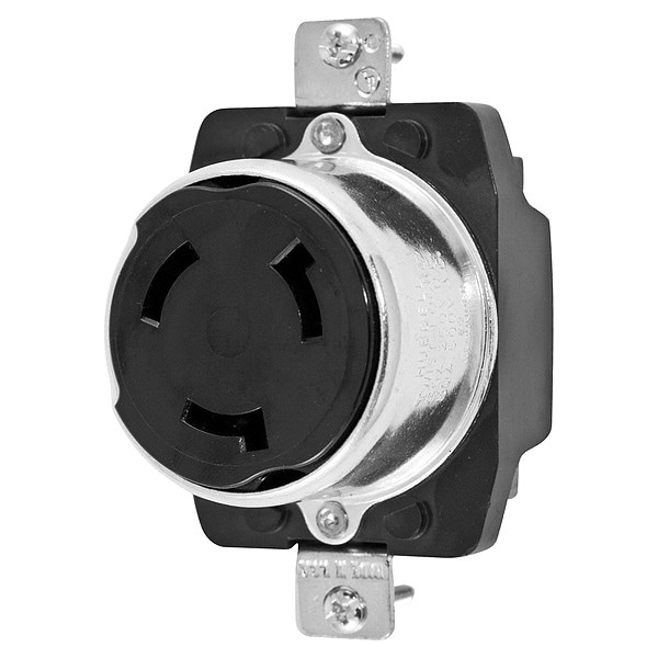 Locking Receptacle, Non-NEMA, 50 A, 250/600V AC, Single Phase, 3 Pole, Flush Mount, Screw Terminals