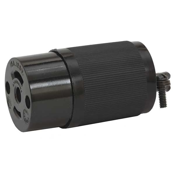 Midget Locking Connector, Connection Orientation Straight, Current Rating 15 A, Housing Color Black, Housing Material Nylon, IP Rating IP20, NEMA Receptacle Configuration ML2-15R, Number of Poles 2, Number of Wires 3, Phase Single, Resistance Properties Impact Resistant, Shrouded No, Voltage Rating 125V AC, Wire Connection Type Spring Clamp Terminals, Wiring Style Standard, Cap Type No Cap or Cover, Contact Material Brass, For Maximum Cable Diameter 0.421 in, For Minimum Cable Diameter 0.281 in