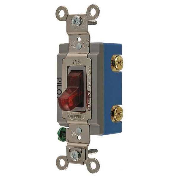 Pilot Light Wall Switch, Color Red, Current Rating 15 A, Pilot Light Yes, Switch Function Maintained, Switch Type 3-Way, Voltage Rating 120/277V AC, Wiring Method Back, Side, Horsepower Rating 1/2 hp, Maximum Wire Size 10 AWG, Minimum Wire Size 14 AWG, Number of Switches 1, Resistance Properties Shatter and Crack Resistant, Impact Resistant, Standards UL Listed, Switch Style Toggle, Wire Connection Type Screw Terminals