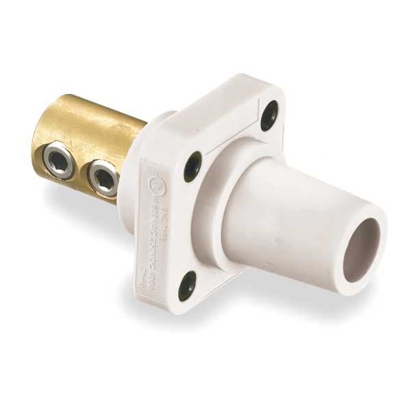 The HUBBELL Receptacle, Double Set Screw, White is a single pole panel mount receptacle rated for use in applications requiring up to 400 amps. This female device includes a double set screw terminal connection and can be used with Series 16 components as specified by the manufacturer. It accommodates wire sizes from #4 AWG to 4/0 AWG and is rated for operation at up to 400 amps and within voltage ranges of 600V AC or 250V DC. The housing material: thermoplastic elastomer; intended for indoor dry locations, unless otherwise protected according to installation requirements.