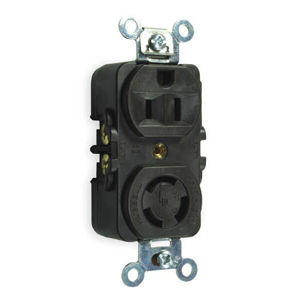 Combination Device, Current Rating 15 A, Device Type Duplex Outlet, Housing Color Brown, NEMA Receptacle Configuration 5-15R, Number of Poles 2, Number of Wires 3, Voltage Rating 125/250V AC, Electrical Connection Type Locking, Grounding Grounded, Horsepower Rating 1/2 hp, Housing Material Reinforced Thermoplastic Polyester, Includes Mounting Hardware Yes, Mount Hole Center-to-Center Height 3.28 in, Standards CSA Certified, UL Listed, Wire Connection Type Screw Terminals