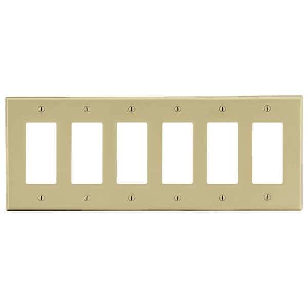 Rocker Wall Plate, Number of Gangs: 6 Plastic, Satin Finish, Ivory