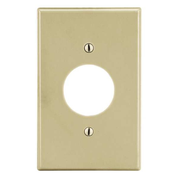 Single Receptacle Wall Plate, Number of Gangs: 1 Plastic, Satin Finish, Ivory