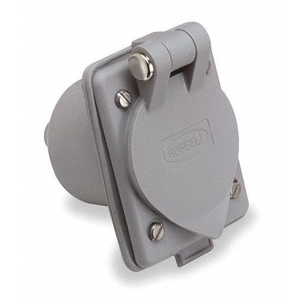 Flanged Inlet, Cover Type Flip-Up Cover, Current Rating 15 A, Flange Shape Rectangular, Grounding Grounded, Housing Color Gray, IP Rating IP20, NEMA Plug Configuration 5-15P, Number of Blades 3, Number of Poles 2, Phase Single, Voltage Rating 125V AC, Connection Orientation Straight, Flange Type Flanged, Grade Marine, Horsepower Rating 1/2 hp, Market Industrial, Resistance Properties Weather Resistant, Standards CSA Certified C22.2 No. 42, NEMA WD-6, UL E2186