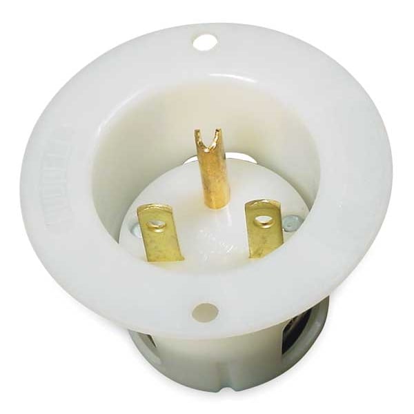 Straight Blade Inlet, 15 A, 250V AC, 2 Pole, 3 Wire, Flush Mount, Grounded