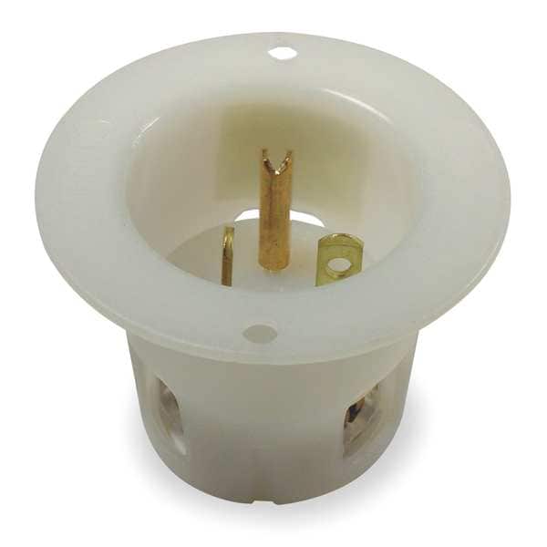 Straight Blade Inlet, 20 A, 250V AC, 2 Pole, 3 Wire, Flush Mount, Grounded