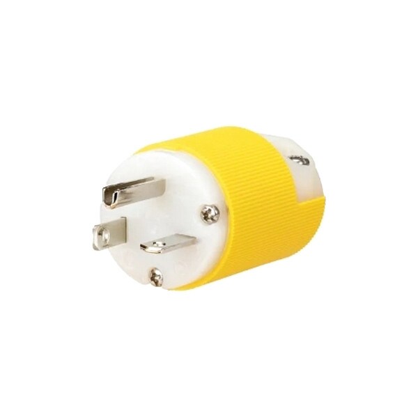 Straight Blade Plug, Connection Orientation Straight, Current Rating 20 A, Grounding Grounded, Horsepower Rating 2 hp, Housing Color White, Yellow, IP Rating IP20, NEMA Plug Configuration 6-20P, Number of Blades 3, Number of Poles 2, Phase Single, Polarized Yes, Resistance Properties Corrosion Resistant, Non-Conductive Housing, UL 94 Flammability Rating V-2, Voltage Rating 250V AC, Wire Connection Type Spring Clamp Terminals, Wiring Style Standard, Face Diameter 1.527 in