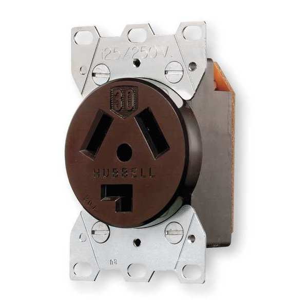 Straight Blade Receptacle, 10-30R, 30 A, 125/250V AC, 3 Pole, 3 Wire, Flush Mount, Grounded