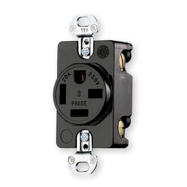 Receptacle, Connection Orientation Straight, Cover Type No Cover, Current Rating 20 A, GFCI No, Grounding Grounded, Housing Color Black, Housing Material Nylon, Mount Type Flush, NEMA Enclosure Rating 1, NEMA Receptacle Configuration 15-20R, Number of Gangs 1, Number of Poles 3, Number of Wires 4, Phase Three, Polarized Yes, Receptacle Type Single, Standards CSA C22.2 No. 42 File 280C, NEMA WD-6, UL 498 File E1706, Voltage Rating 250V AC, Wire Connection Type Screw Terminals