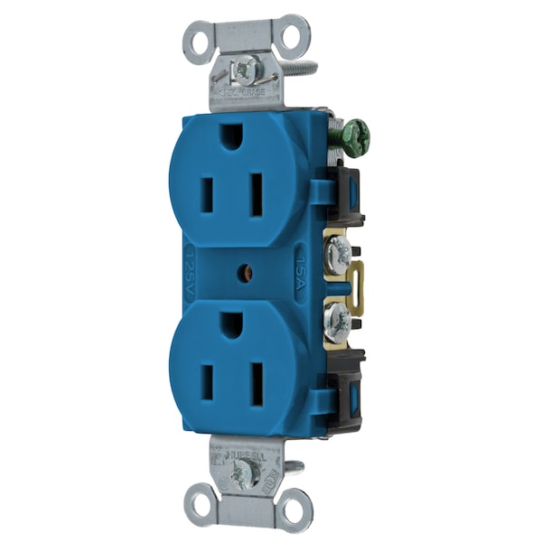 Hubbell Wiring Device Kellems, Straight Blade Devices, DuplexReceptacle,Commercial Grade, 15A 125V, 2-Pole 3-Wire Grounding, 5-15R, Back andSide Wired, Blue