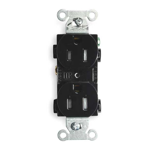 Straight Blade Receptacle, 5-15R, 15 A, 125V AC, 2 Pole, 3 Wire, Flush Mount, Grounded