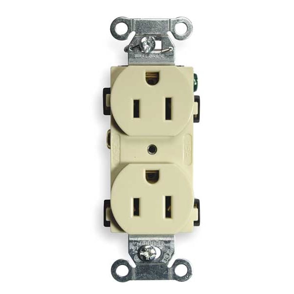 Receptacle, Connection Orientation Straight, Cover Type No Cover, Current Rating 15 A, GFCI No, Grounding Grounded, Housing Color Ivory, Housing Material Nylon, Mount Type Flush, NEMA Enclosure Rating 1, NEMA Receptacle Configuration 5-15R, Number of Gangs 1, Number of Poles 2, Number of Wires 3, Phase Single, Polarized Yes, Receptacle Type Duplex, Standards CSA Certified C22.2 No. 42, Federal Specification W-C-59, NEMA WD-6, UL 498 File E2186, Voltage Rating 125V AC