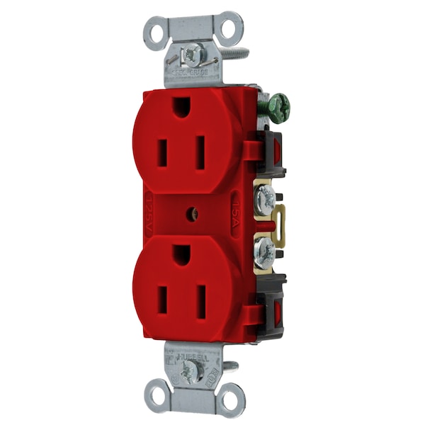 Hubbell Wiring Device Kellems, Straight Blade Devices, DuplexReceptacle, Commercial Grade, 15A 125V, 2-Pole 3-Wire Grounding, 5-15R,Back and Side Wired, Red