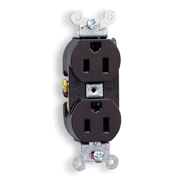 Receptacle, Connection Orientation Straight, Cover Type No Cover, Current Rating 15 A, GFCI No, Grounding Grounded, Housing Color Brown, Housing Material Nylon, Mount Type Flush, NEMA Enclosure Rating 1, NEMA Receptacle Configuration 5-15R, Number of Gangs 1, Number of Poles 2, Number of Wires 3, Phase Single, Polarized Yes, Receptacle Type Duplex, Standards CSA Certified C22.2, Federal Specification W-C-596, NEMA WD-6, UL 498, Voltage Rating 125V AC, Wire Connection Type Screw Terminals