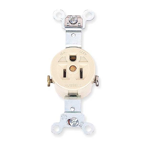 Receptacle, Connection Orientation Straight, Cover Type No Cover, Current Rating 15 A, GFCI No, Grounding Grounded, Housing Color Ivory, Housing Material Thermoplastic, Mount Type Flush, NEMA Enclosure Rating 1, NEMA Receptacle Configuration 5-15R, Number of Gangs 1, Number of Poles 2, Number of Wires 3, Phase Single, Polarized Yes, Receptacle Type Single, Standards CSA Certified C22.2 No. 42, Federal Specification W-C-596, NEMA WD-6, UL E2186, Voltage Rating 125V AC