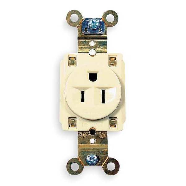 Straight Blade Receptacle, 5-15R, 15 A, 125V AC, 2 Pole, 3 Wire, Flush Mount, Grounded