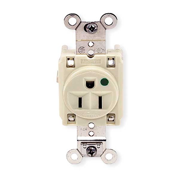 Straight Blade Receptacle, 5-15R, 15 A, 125V AC, 2 Pole, 3 Wire, Flush Mount, Grounded