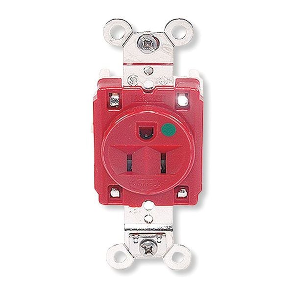 The HUBBELL Hospital Grade Single Receptacle is a 15A, 125V AC flush mount outlet suitable for use in high-traffic or commercial settings. This single NEMA 5-15R receptacle features a one-piece nickel-plated brass integral ground strap and features a patented bypass contact design to increase contact pressure and reduce operating temperature. It is rated for hospital grade applications, meets applicable UL requirements (UL498 File E2186).