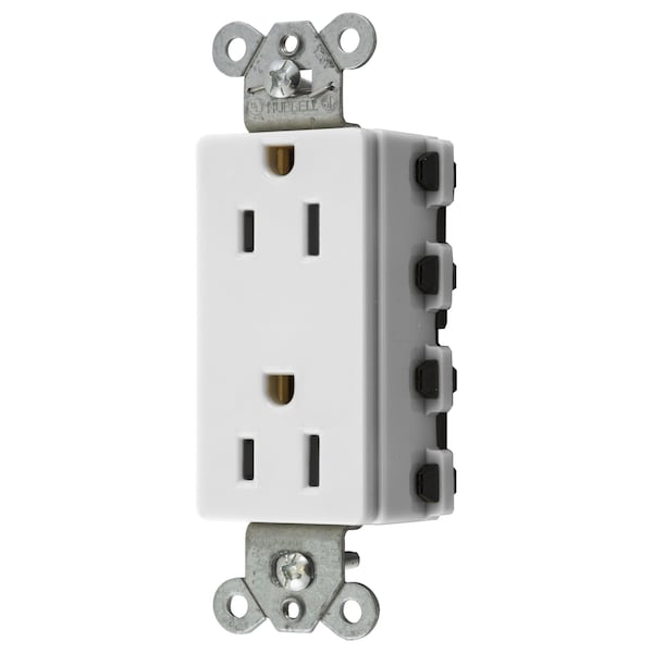 Hubbell Wiring Device Kellems, Straight Blade Devices, Receptacles,Decorator Duplex, SNAPConnect 2, 15A 125V, 2-Pole 3-Wire Grounding, 5-15R, White, USA