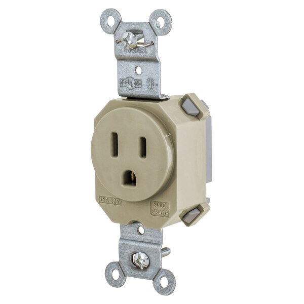 Hubbell Wiring Device Kellems, Straight Blade Devices, Receptacle,Single, SNAPConnect, 15A 125V, 2-Pole 3-Wire Grounding, 5-15R, Ivory