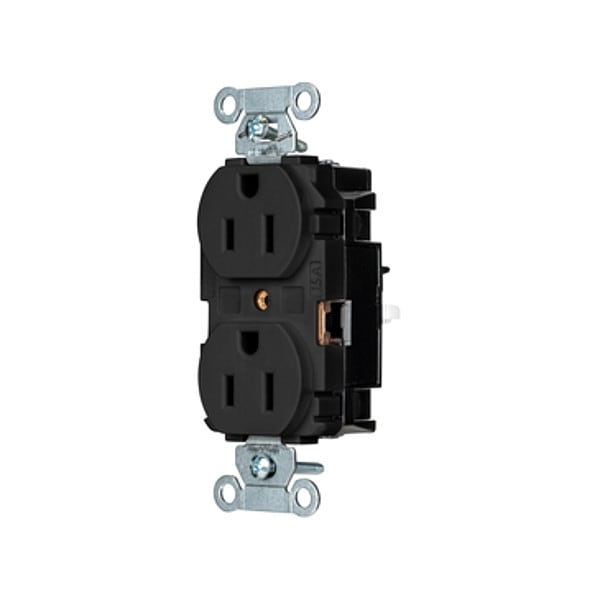 Receptacle, Connection Orientation Straight, Cover Type No Cover, Current Rating 15 A, GFCI No, Grounding Grounded, Hazardous Location Specification Not Applicable, Housing Color Black, Housing Material Thermoplastic, Mount Type Surface, NEMA Enclosure Rating 1, NEMA Receptacle Configuration 5-15R, Number of Gangs 1, Number of Poles 2, Number of Wires 3, Phase Single, Polarized Yes, Receptacle Type Duplex, Resistance Properties Tamper Resistant