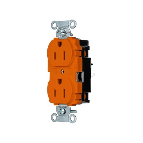 Receptacle, Connection Orientation Straight, Cover Type No Cover, Current Rating 15 A, GFCI No, Grounding Grounded, Hazardous Location Specification Not Applicable, Housing Color Orange, Housing Material Thermoplastic, Mount Type Surface, NEMA Enclosure Rating 1, NEMA Receptacle Configuration 5-15R, Number of Gangs 1, Number of Poles 2, Number of Wires 3, Phase Single, Polarized Yes, Receptacle Type Duplex, Resistance Properties Tamper Resistant