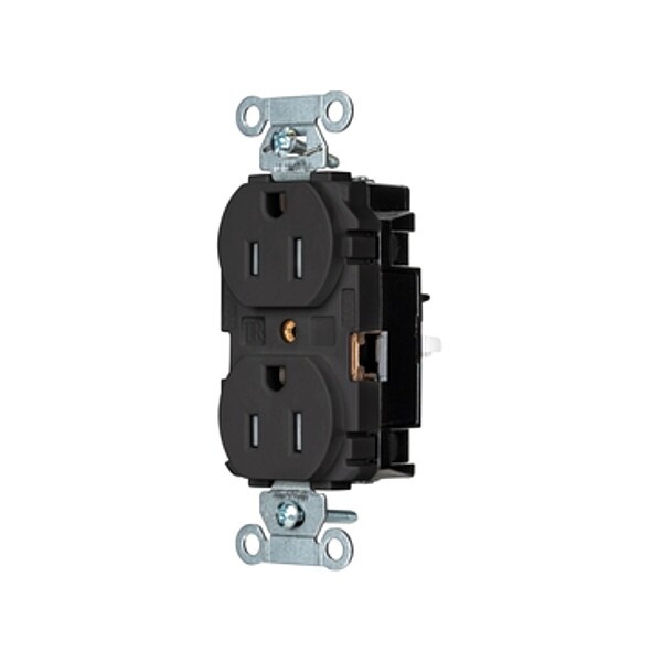 Receptacle, Connection Orientation Straight, Cover Type No Cover, Current Rating 15 A, GFCI No, Grounding Grounded, Hazardous Location Specification Not Applicable, Housing Color Black, Housing Material Thermoplastic, Mount Type Surface, NEMA Enclosure Rating 1, NEMA Receptacle Configuration 5-15R, Number of Gangs 1, Number of Poles 2, Number of Wires 3, Phase Single, Polarized Yes, Receptacle Type Duplex, Resistance Properties Tamper Resistant