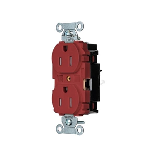 Receptacle, Connection Orientation Straight, Cover Type No Cover, Current Rating 15 A, GFCI No, Grounding Grounded, Hazardous Location Specification Not Applicable, Housing Color Red, Housing Material Thermoplastic, Mount Type Surface, NEMA Enclosure Rating 1, NEMA Receptacle Configuration 5-15R, Number of Gangs 1, Number of Poles 2, Number of Wires 3, Phase Single, Polarized Yes, Receptacle Type Duplex, Resistance Properties Tamper Resistant