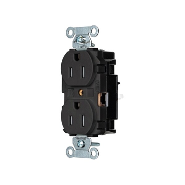 Receptacle, Connection Orientation Straight, Cover Type No Cover, Current Rating 15 A, GFCI No, Grounding Grounded, Hazardous Location Specification Not Applicable, Housing Color Black, Housing Material Thermoplastic, Mount Type Surface, NEMA Enclosure Rating 1, NEMA Receptacle Configuration 5-15R, Number of Gangs 1, Number of Poles 2, Number of Wires 3, Phase Single, Polarized Yes, Receptacle Type Duplex, Resistance Properties Tamper Resistant
