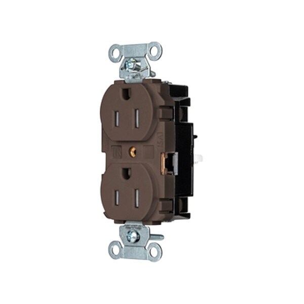 Receptacle, Connection Orientation Straight, Cover Type No Cover, Current Rating 15 A, GFCI No, Grounding Grounded, Hazardous Location Specification Not Applicable, Housing Color Brown, Housing Material Thermoplastic, Mount Type Surface, NEMA Enclosure Rating 1, NEMA Receptacle Configuration 5-15R, Number of Gangs 1, Number of Poles 2, Number of Wires 3, Phase Single, Polarized Yes, Receptacle Type Duplex, Resistance Properties Tamper Resistant